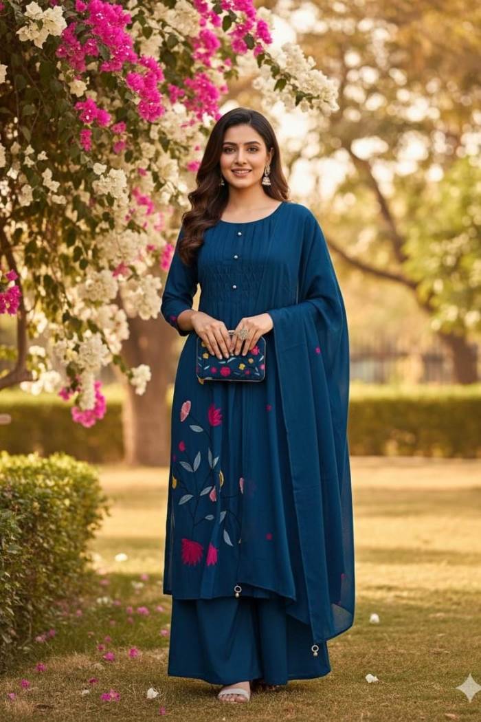 Peacock Blue Color Party Wear Designer Straight Long Suit