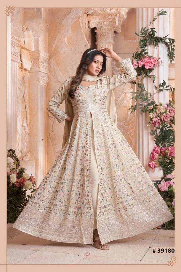 Cream Color Party Wear Designer Anarkali Suit