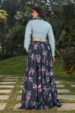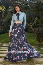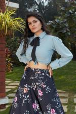 Grey and Black Color Combination Party Wear Skirt & Top with Tie
