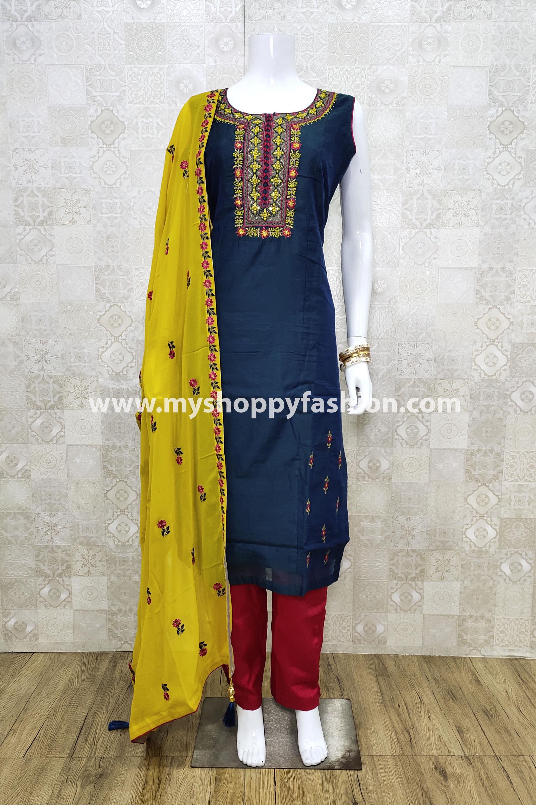 Peacock Blue Color Party Wear Straight Long Suit With Dupatta :: MY SHOPPY LADIES WEAR