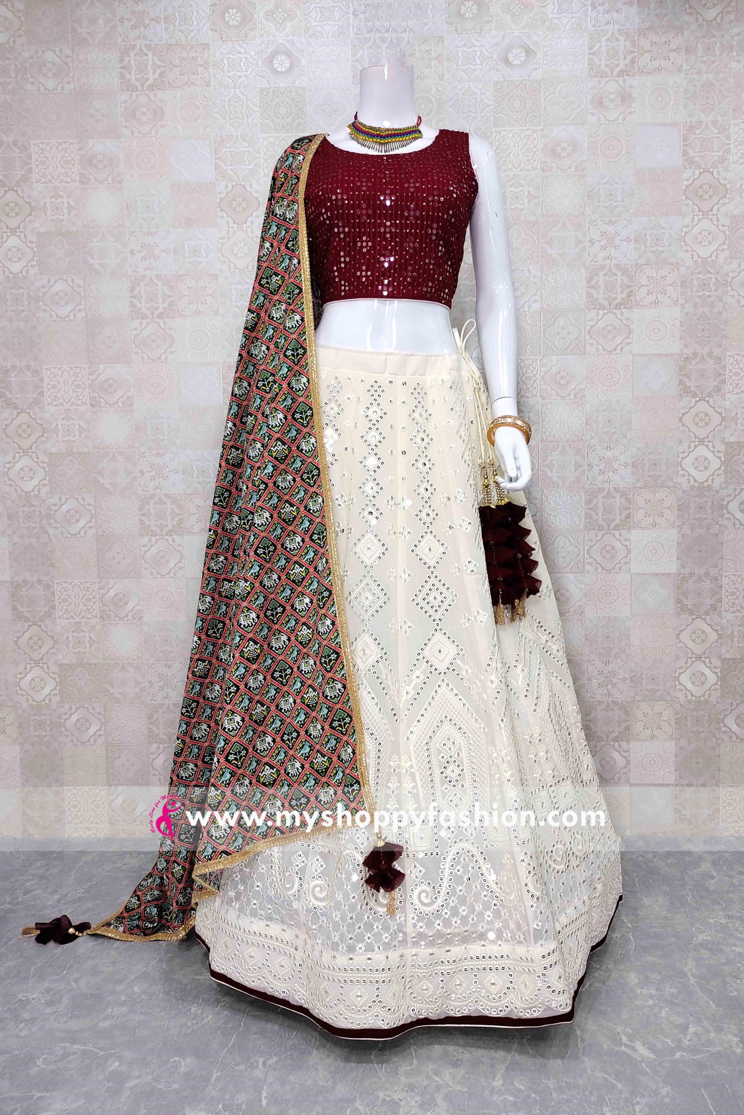 Maroon - White Color Party Wear Lehenga Choli With Dupatta :: MY SHOPPY LADIES WEAR