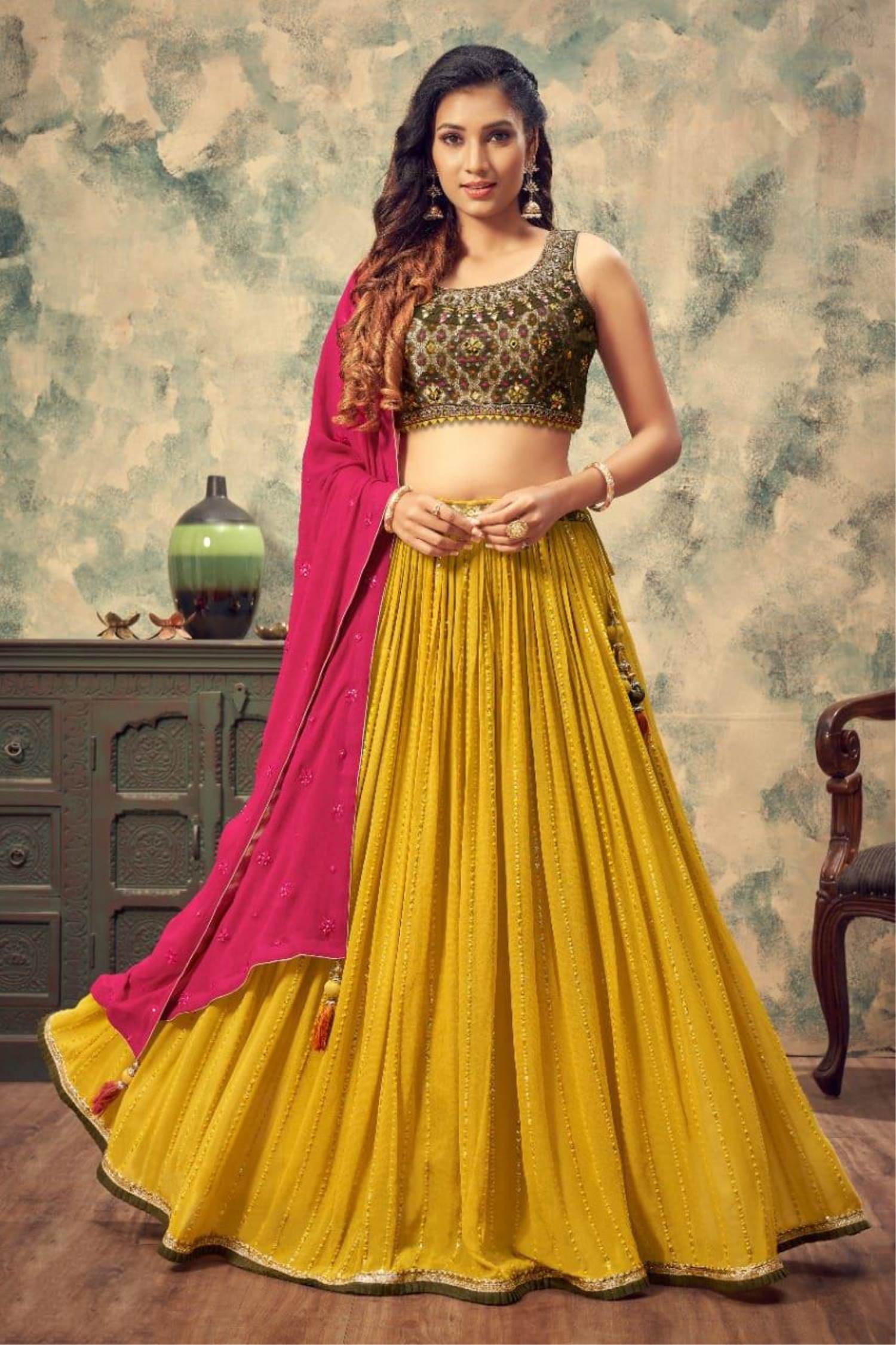 Brown And Mustard Color Party Wear ReadyMade Lehenga Choli :: MY SHOPPY LADIES WEAR