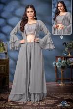 Grey Color Party Wear indo Western Plazo Suit With Koti