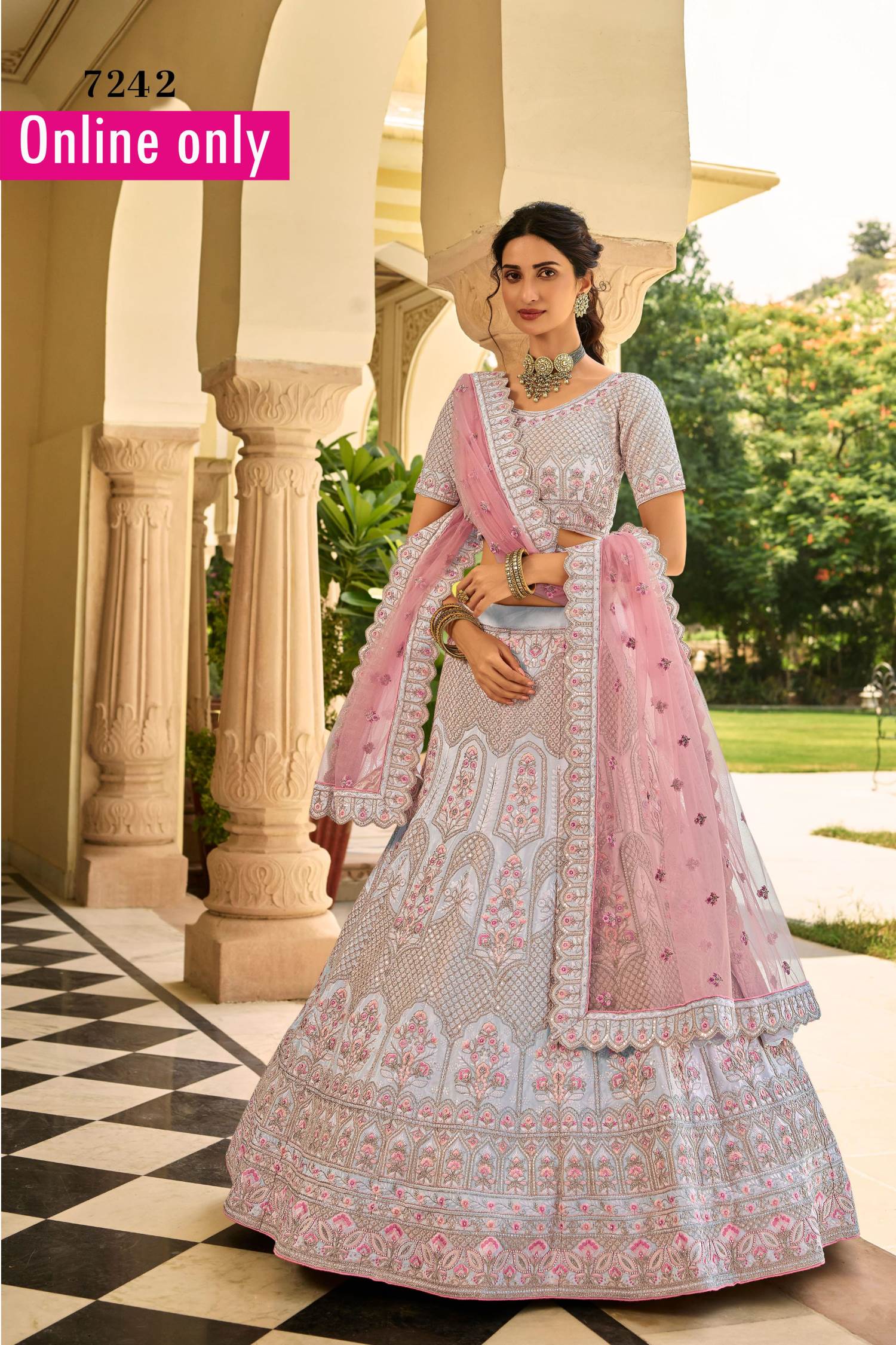 Sky Blue Color Wedding Collection Semi-Stiched Lehenga Choli :: MY SHOPPY LADIES WEAR