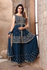 Peacock Blue Color Party Wear Indo Western Plazo Suit With Dupatta