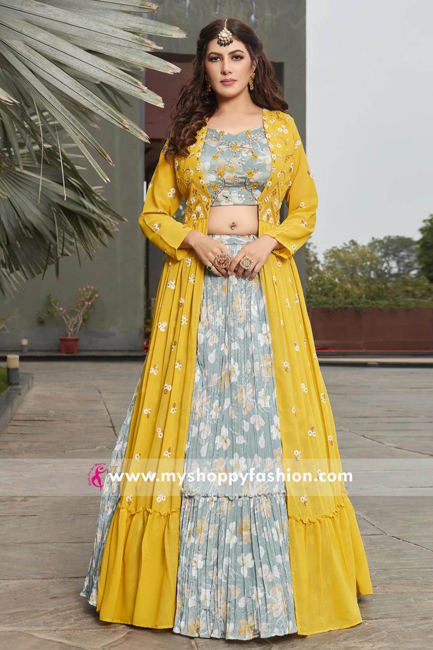 Sea Green & Yellow Combination Designer Lehenga Choli