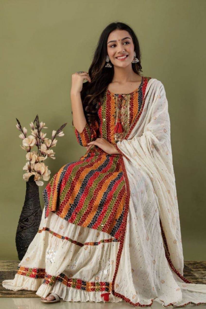Multi Color Designer Kurti With Skirt and Dupatta