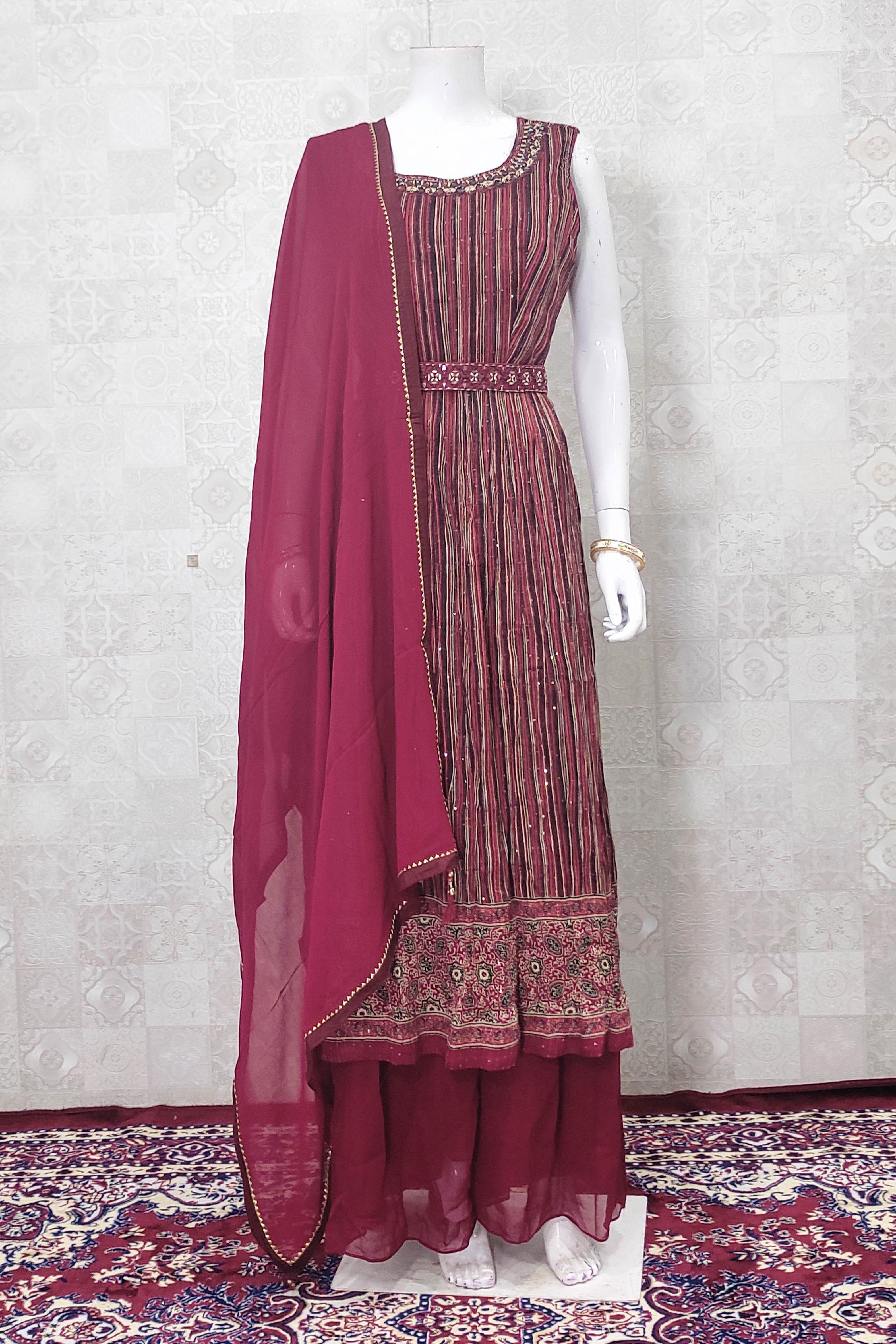 Red Color Party Wear Designer Indo-Western Plaazo Suit