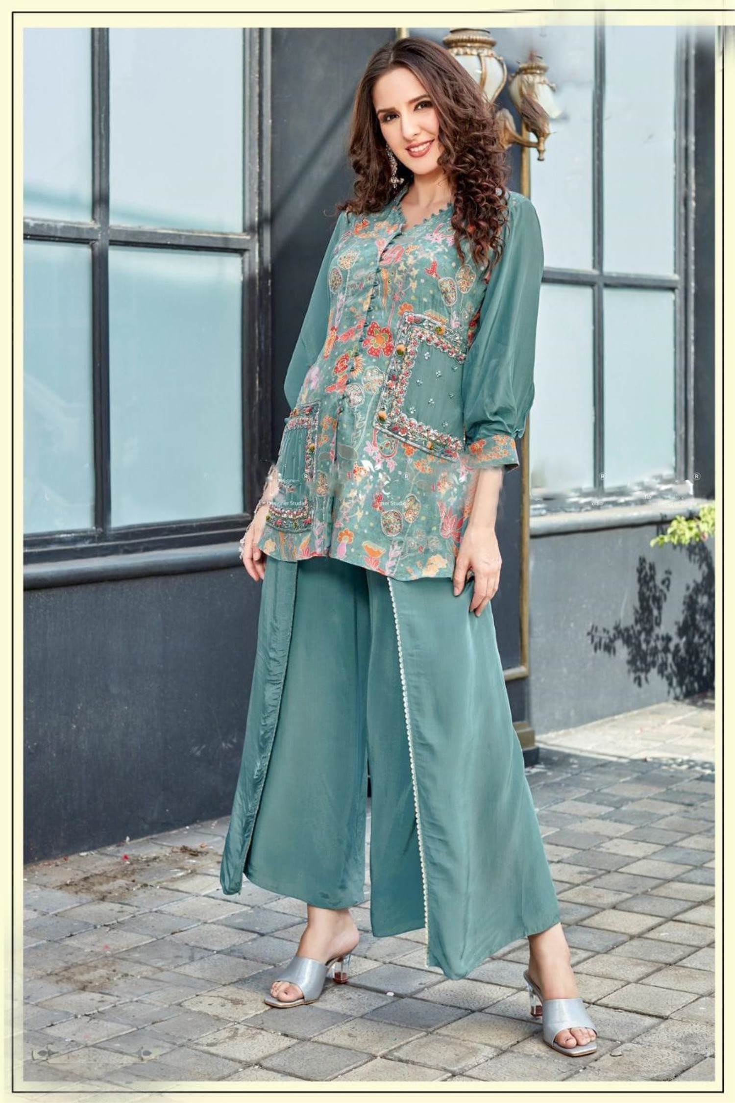 Blue Color Party Wear Designer Indo-Western Plazo Suit