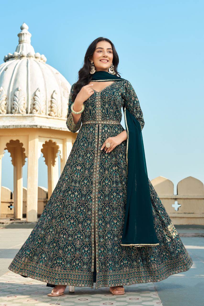Green Color Party Wear Designer Plazo Suit :: MY SHOPPY LADIES WEAR