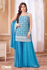 Sky Blue Color Party Wear Designer Short Plazo Suit