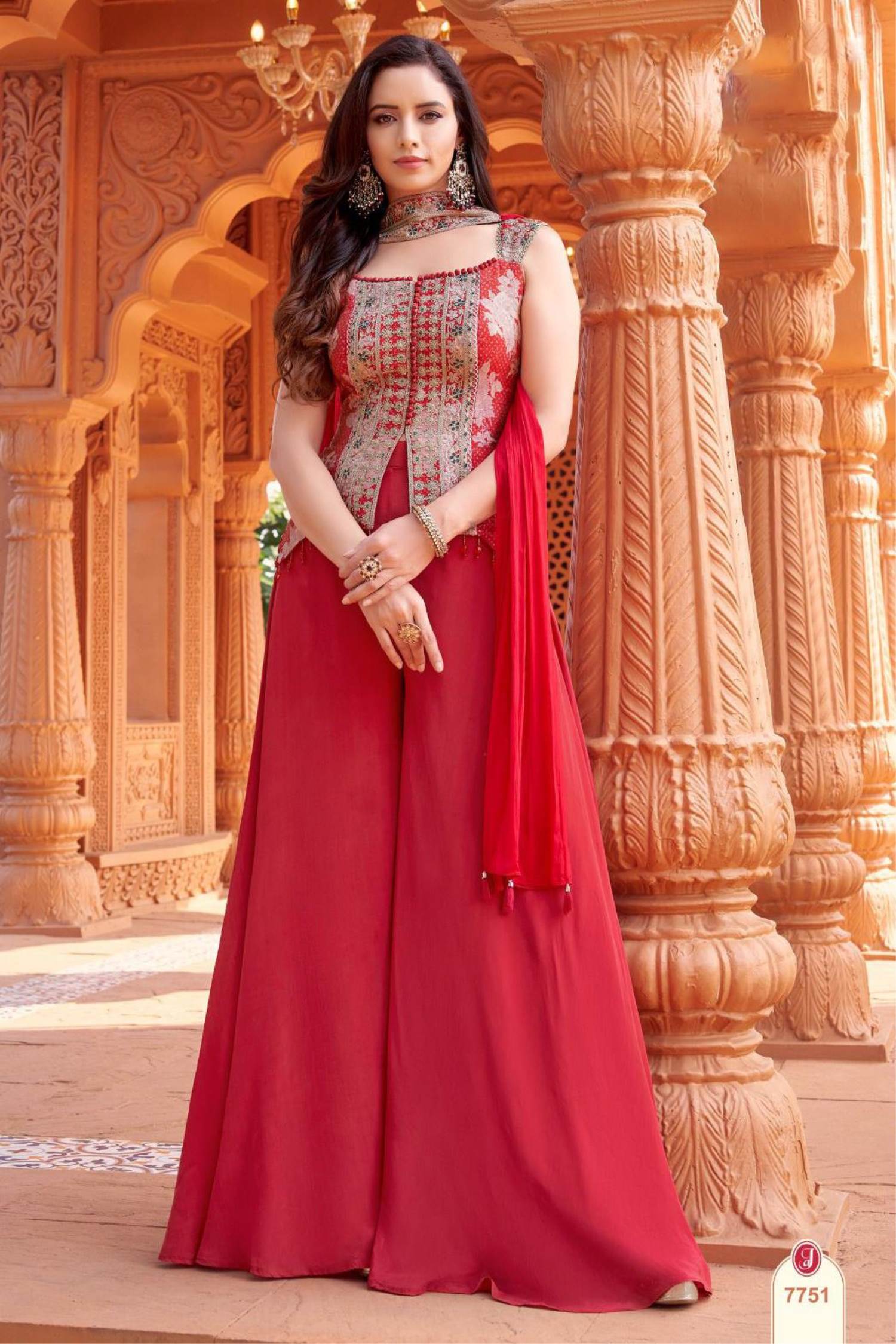 Red Color Party Wear Designer Plazo Suit :: MY SHOPPY LADIES WEAR