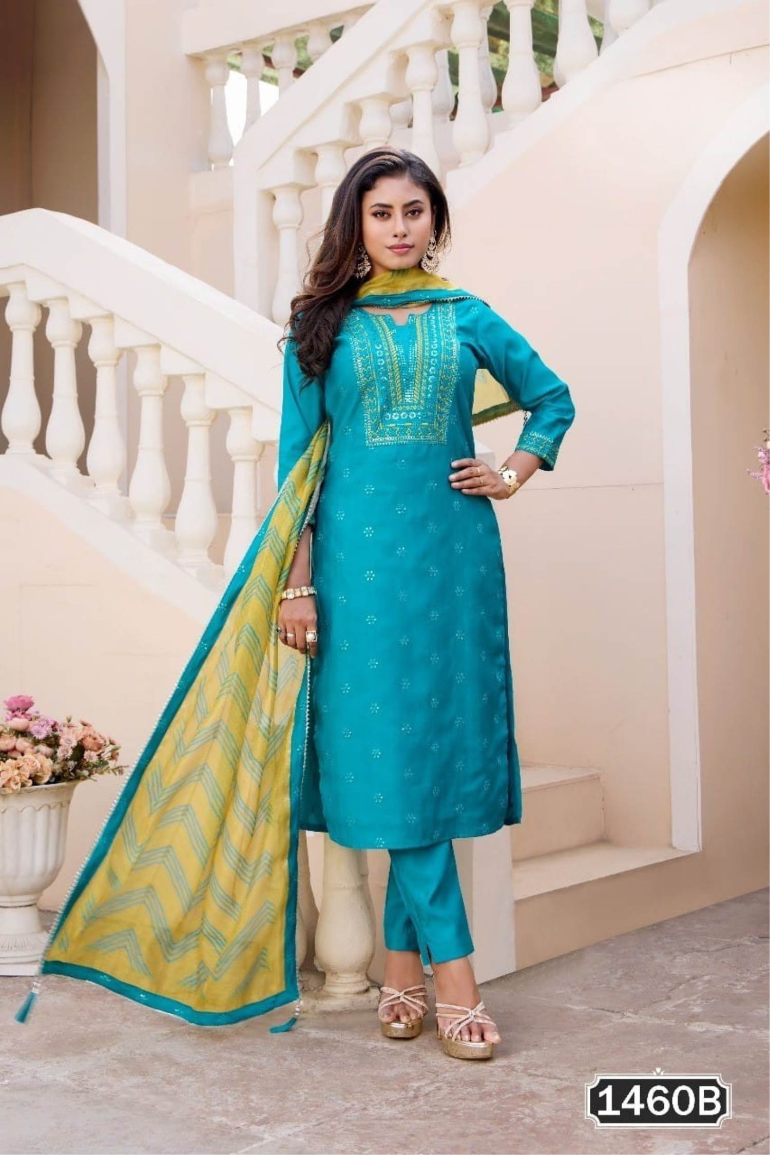Rama Color Straight Dress with Yellow Dupatta :: MY SHOPPY LADIES WEAR