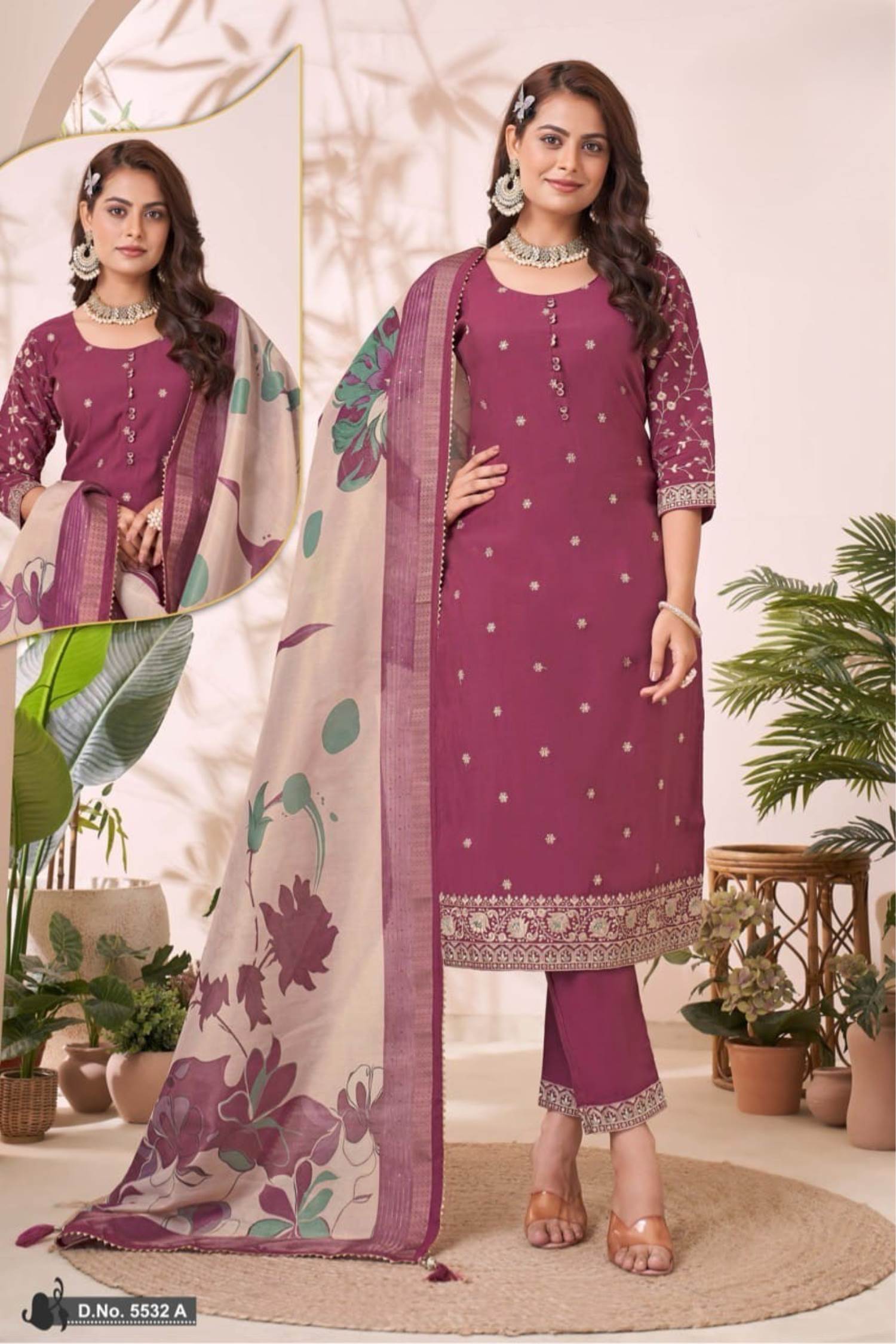 Gajri Color Designer Straight Dress with Contrast printed dupatta