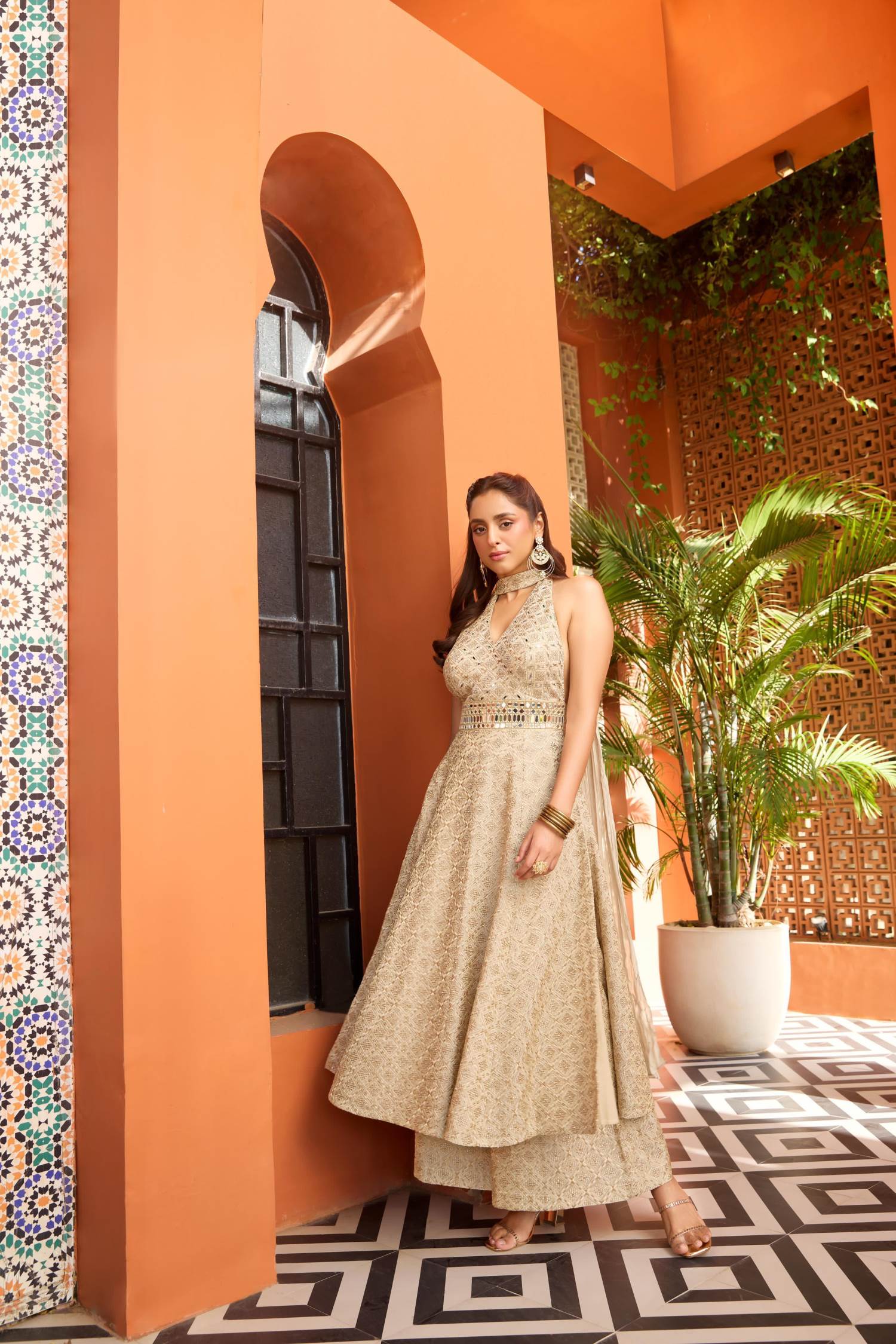 Cream Color Party Wear Designer Plazo Suit :: MY SHOPPY LADIES WEAR