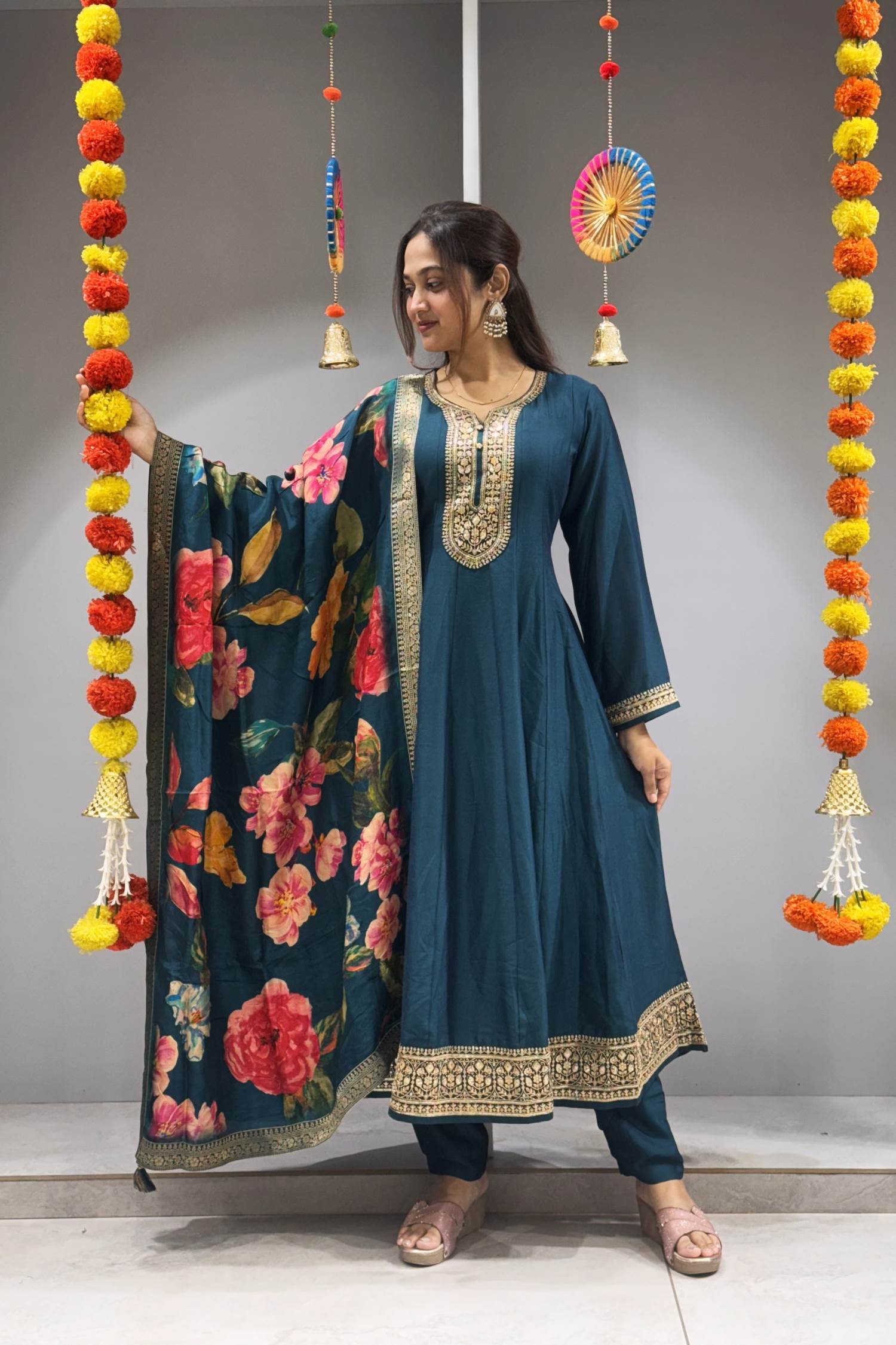 Rama green color Festive collection Anarkali Dress :: MY SHOPPY LADIES WEAR