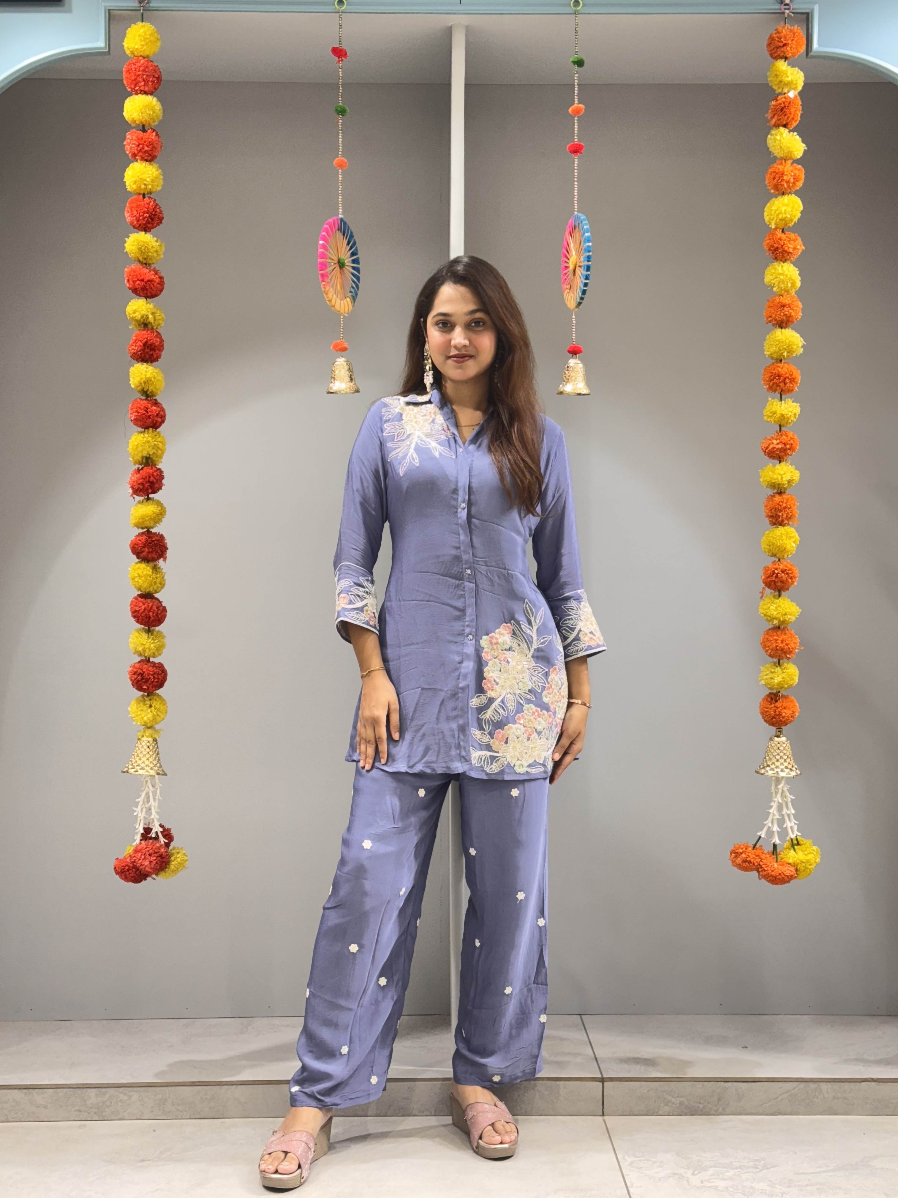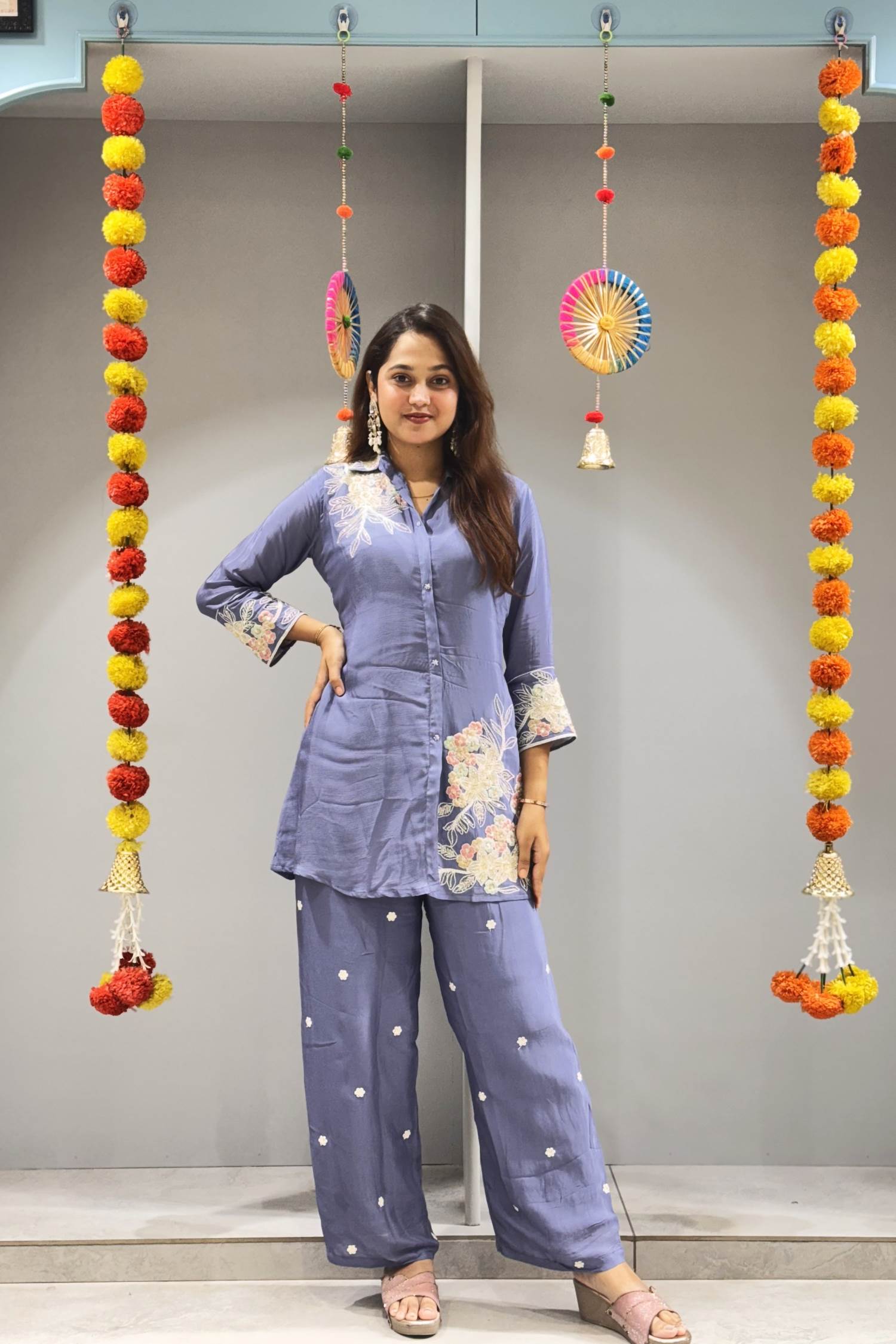 Sky Blue color Designer look CO-ORD set :: MY SHOPPY LADIES WEAR