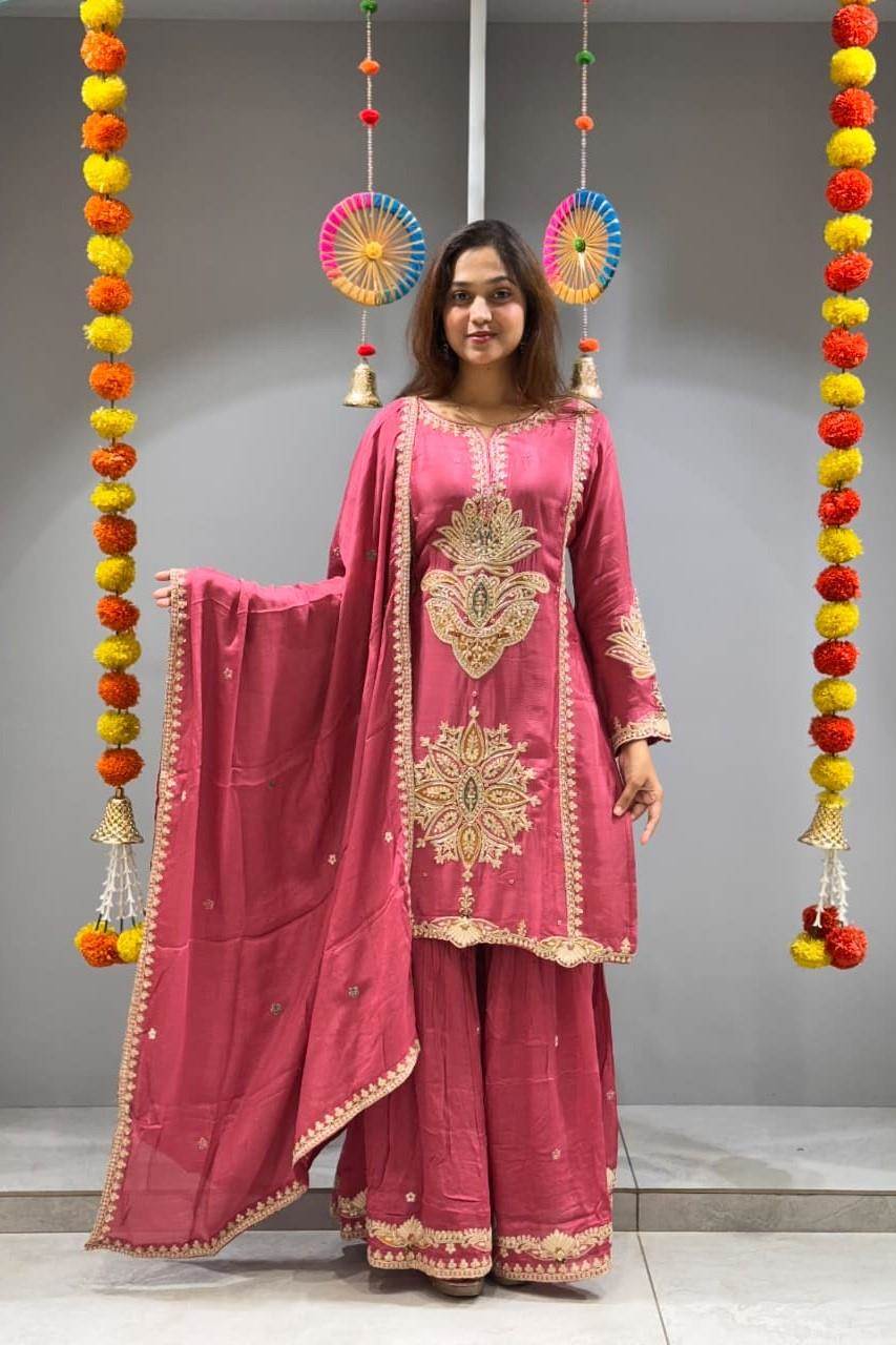 Onion Color Party Wear Designer Plazo Suit :: MY SHOPPY LADIES WEAR