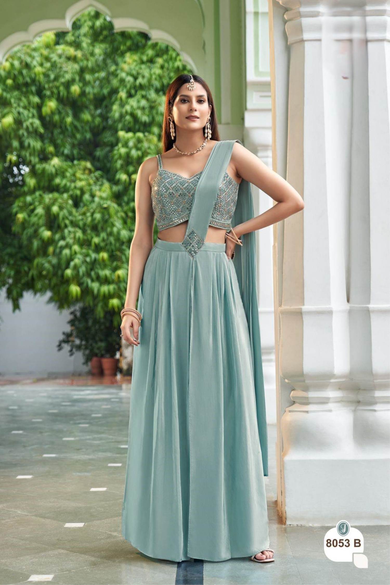 Sky Blue Color Party Wear Designer Indo-Western Saree Choli