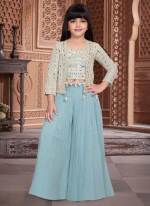 Sky Blue Color Party Wear Designer Plazo Suit With Koti