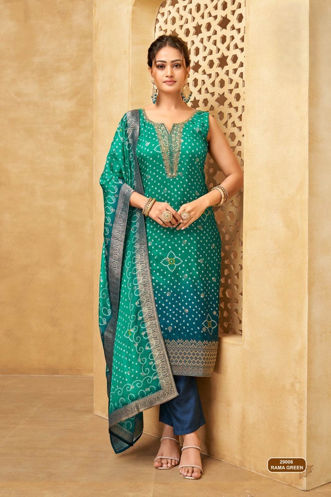 Green Color Traditional Bandhni Dress with Dupatta :: MY SHOPPY LADIES WEAR