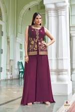 Wine Color Party Wear Designer Plazo Suit