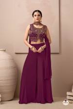 Wine Color Party Wear Designer Plazo Suit :: MY SHOPPY LADIES WEAR