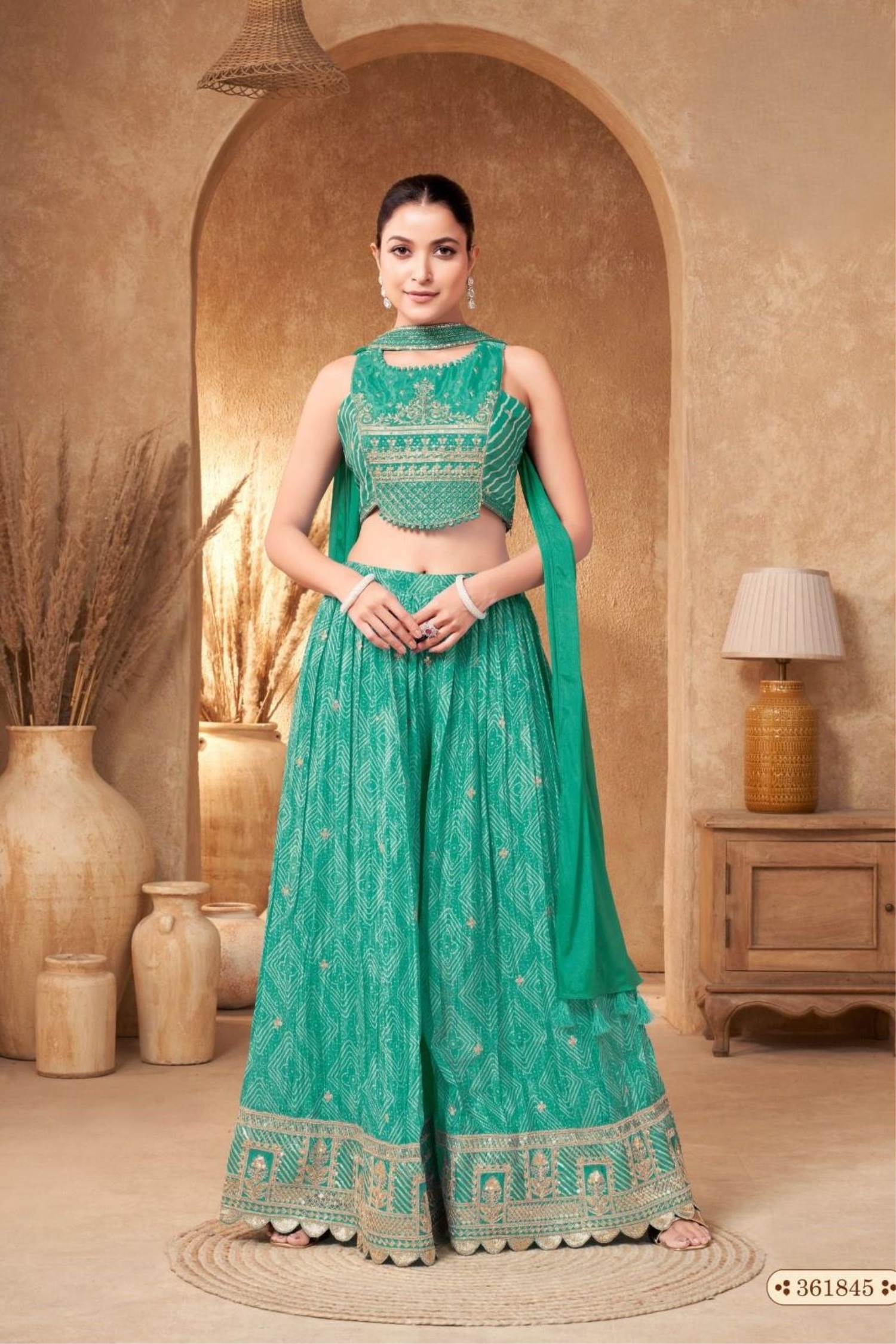 Rama Color Party Wear Designer Indo-Western Plazo Suit