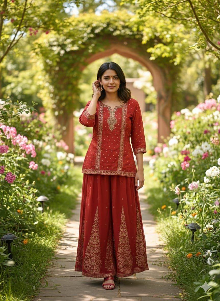 Rust Color Designer look Short top with Plazo