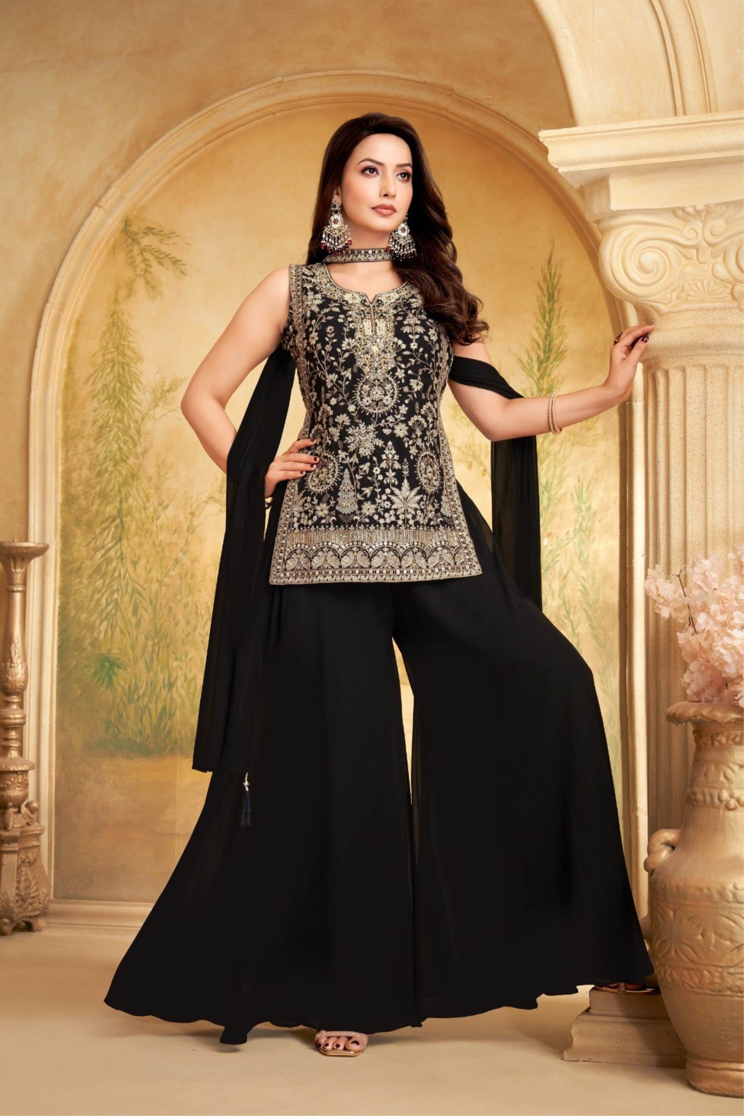Black Color Designer look Plazo Suit