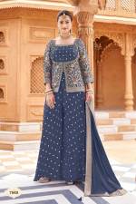 Blue Color Party Wear Designer Plazo Suit