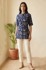 Navy Blue Color Casual Wear Short Kurti :: MY SHOPPY LADIES WEAR