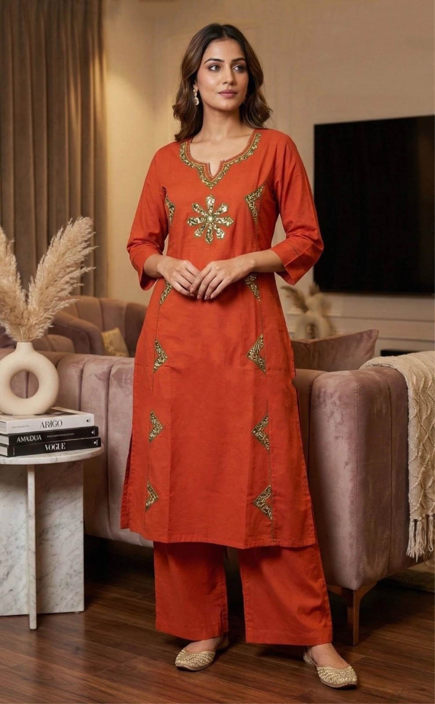 Rust Color Casual Wear Kurti With Plazo