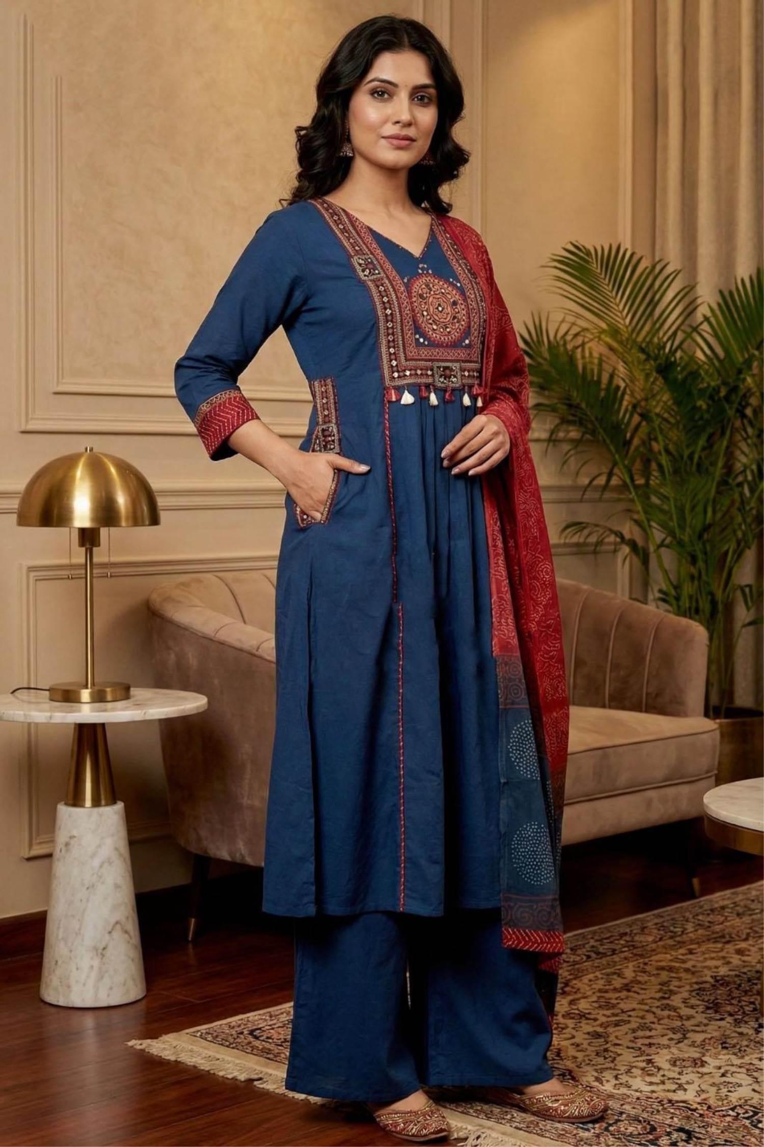 Blue Color Casual wear Pent suit with Dupatta