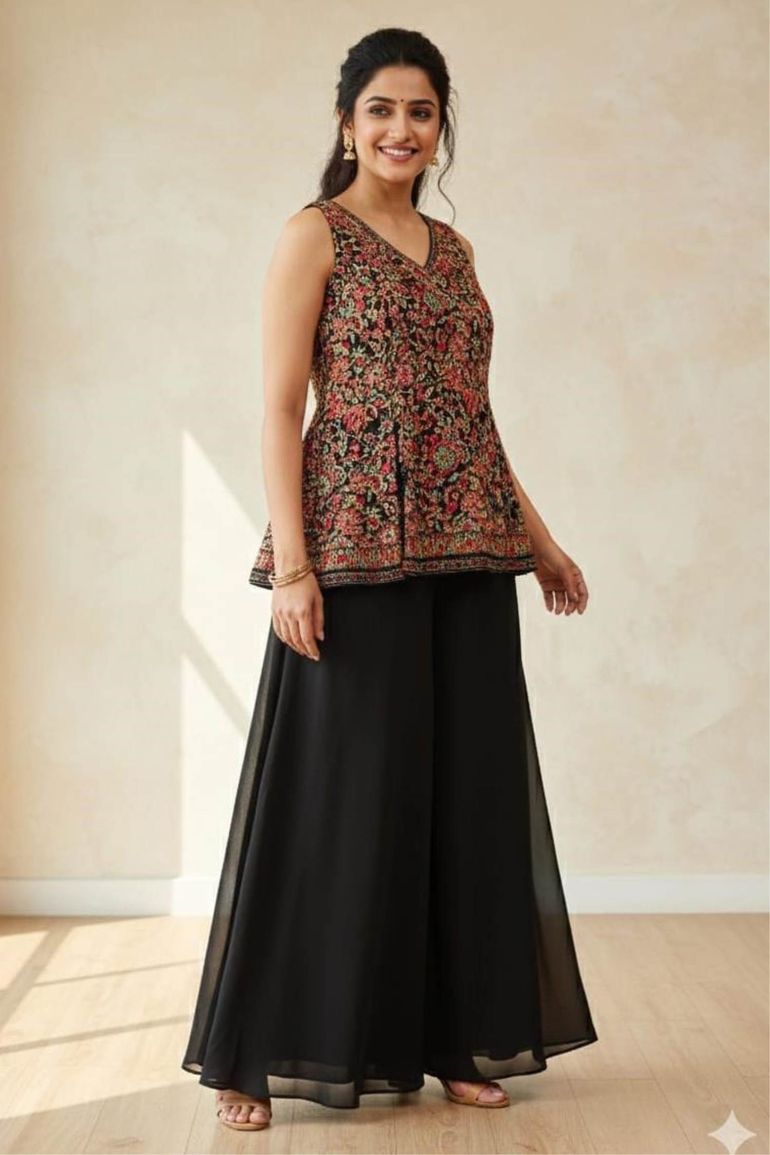 Black Color Party Wear Designer Plazo Suit