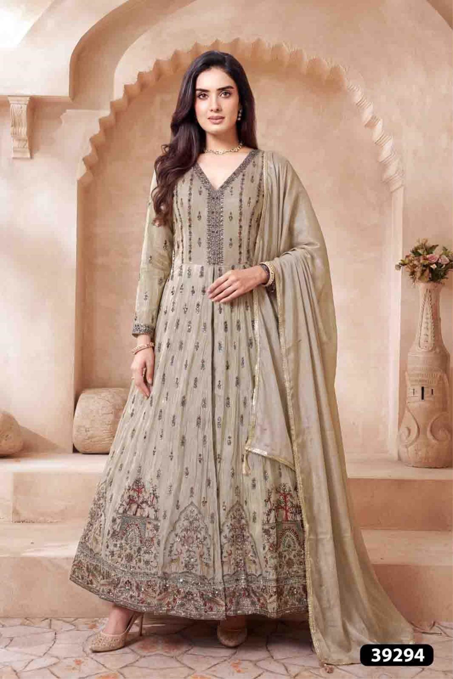 Cream Color Party Wear Designer Anarkali Suit :: MY SHOPPY LADIES WEAR