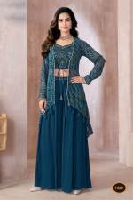Blue Color Party Wear Designer Plazo Suit With Koti :: MY SHOPPY LADIES WEAR