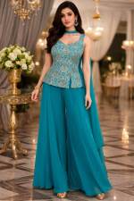 Rama Color Party Wear Designer Short Plazo Suit