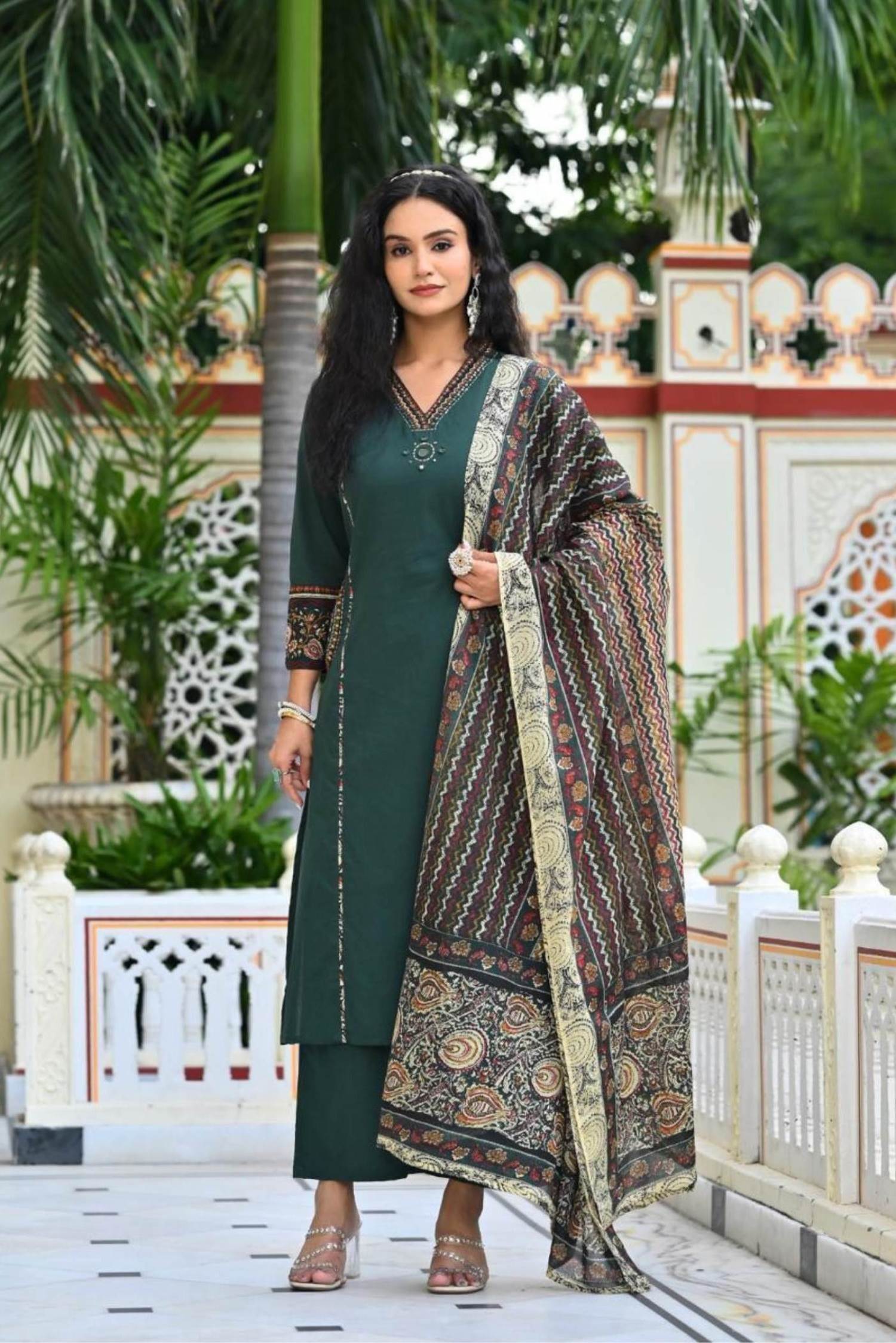Green Color Summer Wear Kurti Plazo With Dupatta