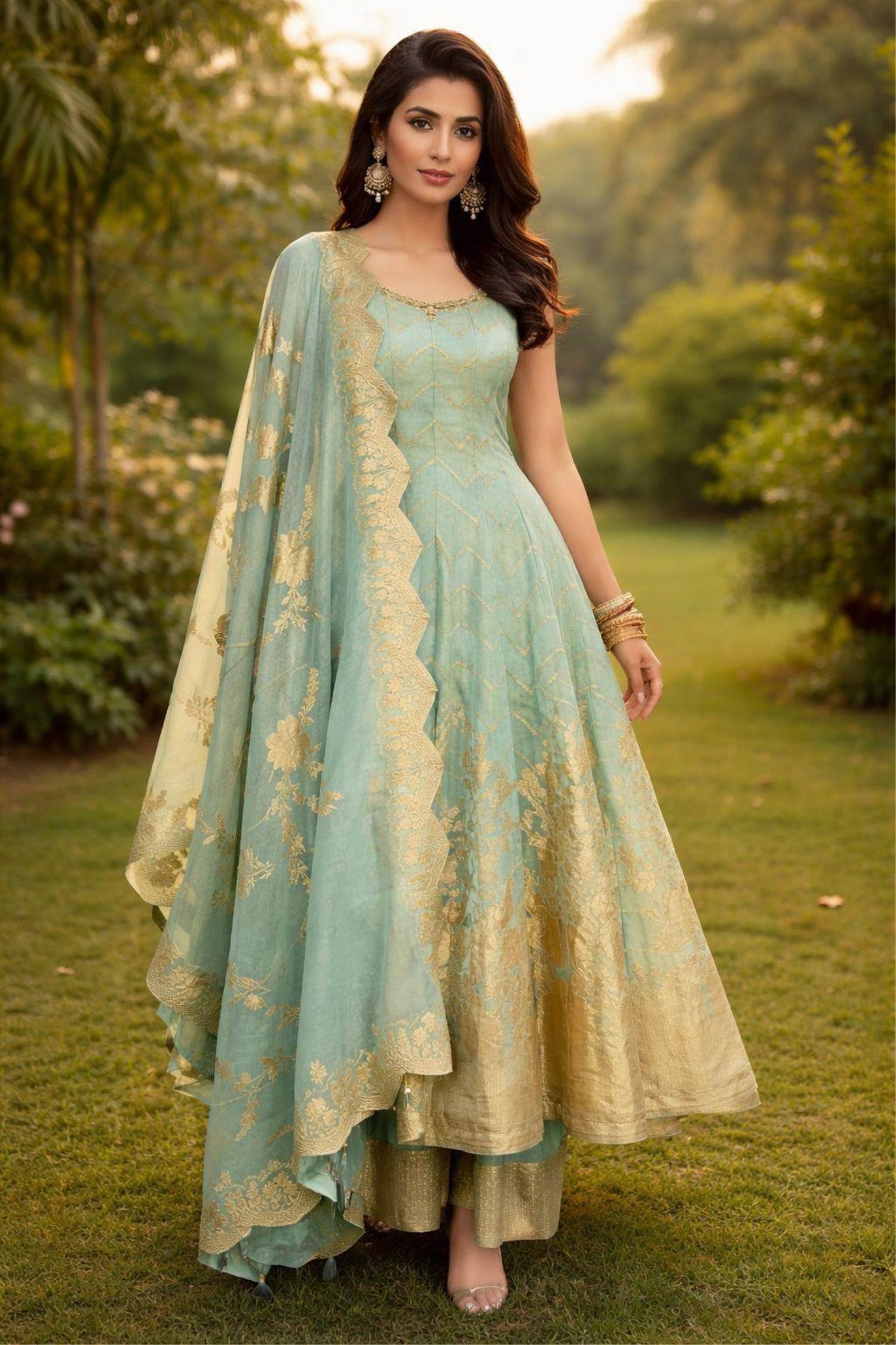 Sea Green Color Party Wear Designer Anarkali Suit