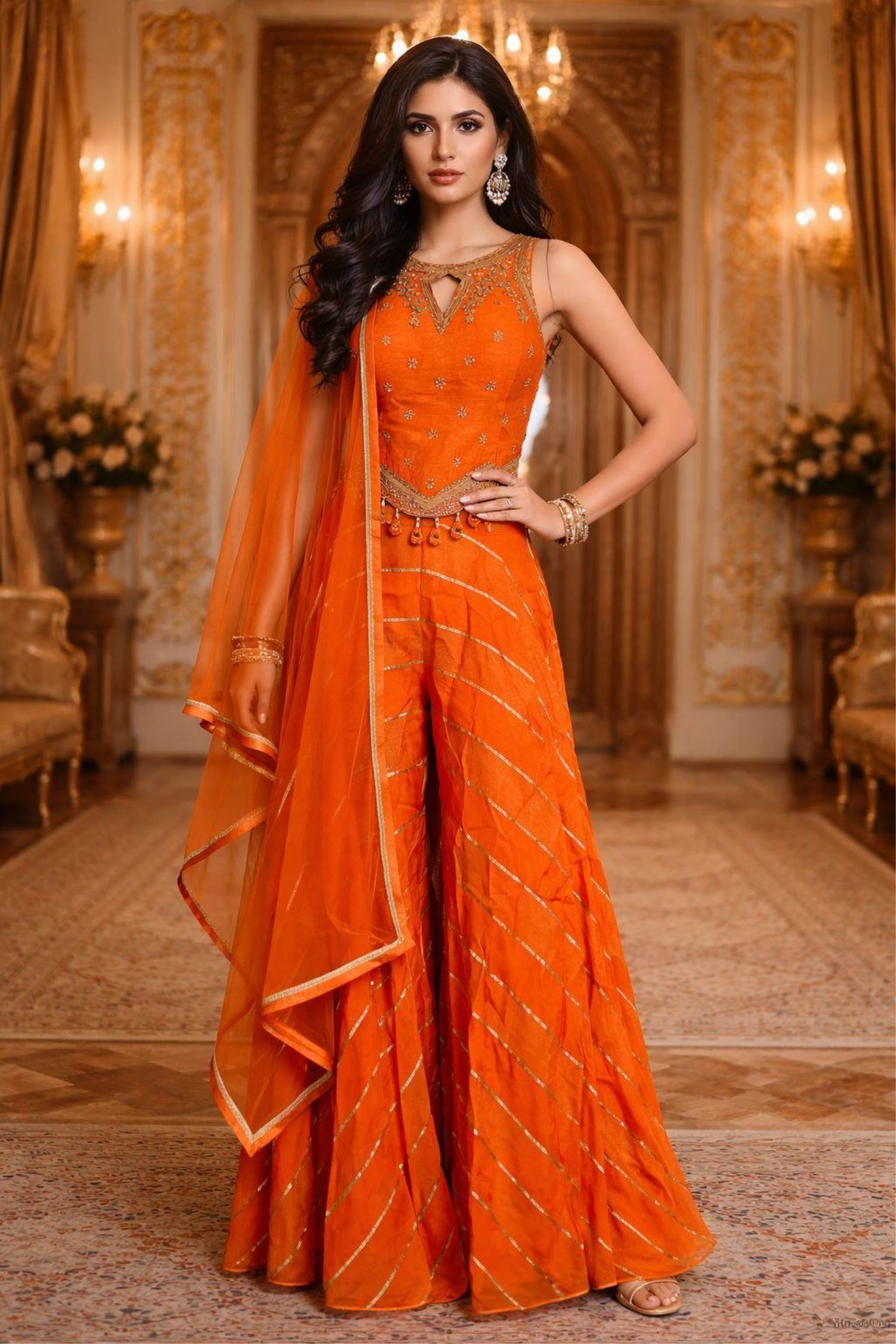 Rust Color Party Wear Designer Plazo Suit :: MY SHOPPY LADIES WEAR