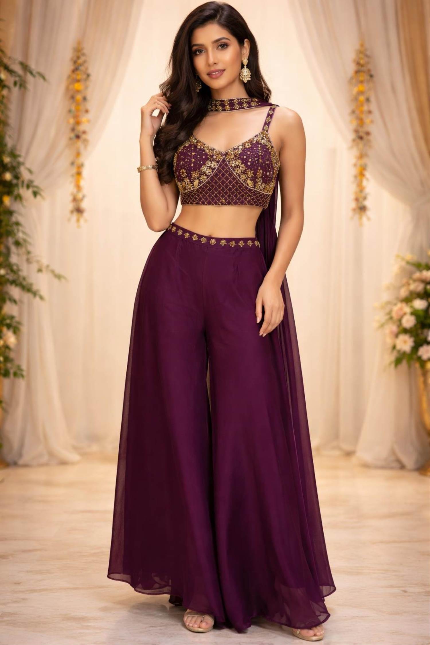 Wine Color Party Wear Designer Plazo Suit