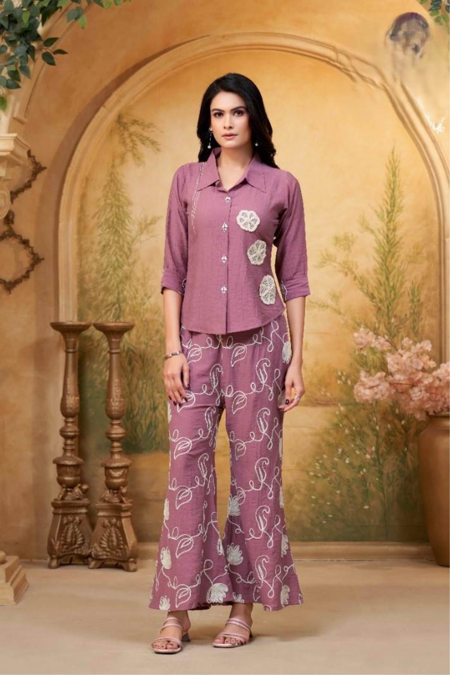 Onion Color Party Wear Designer Co-ord Set
