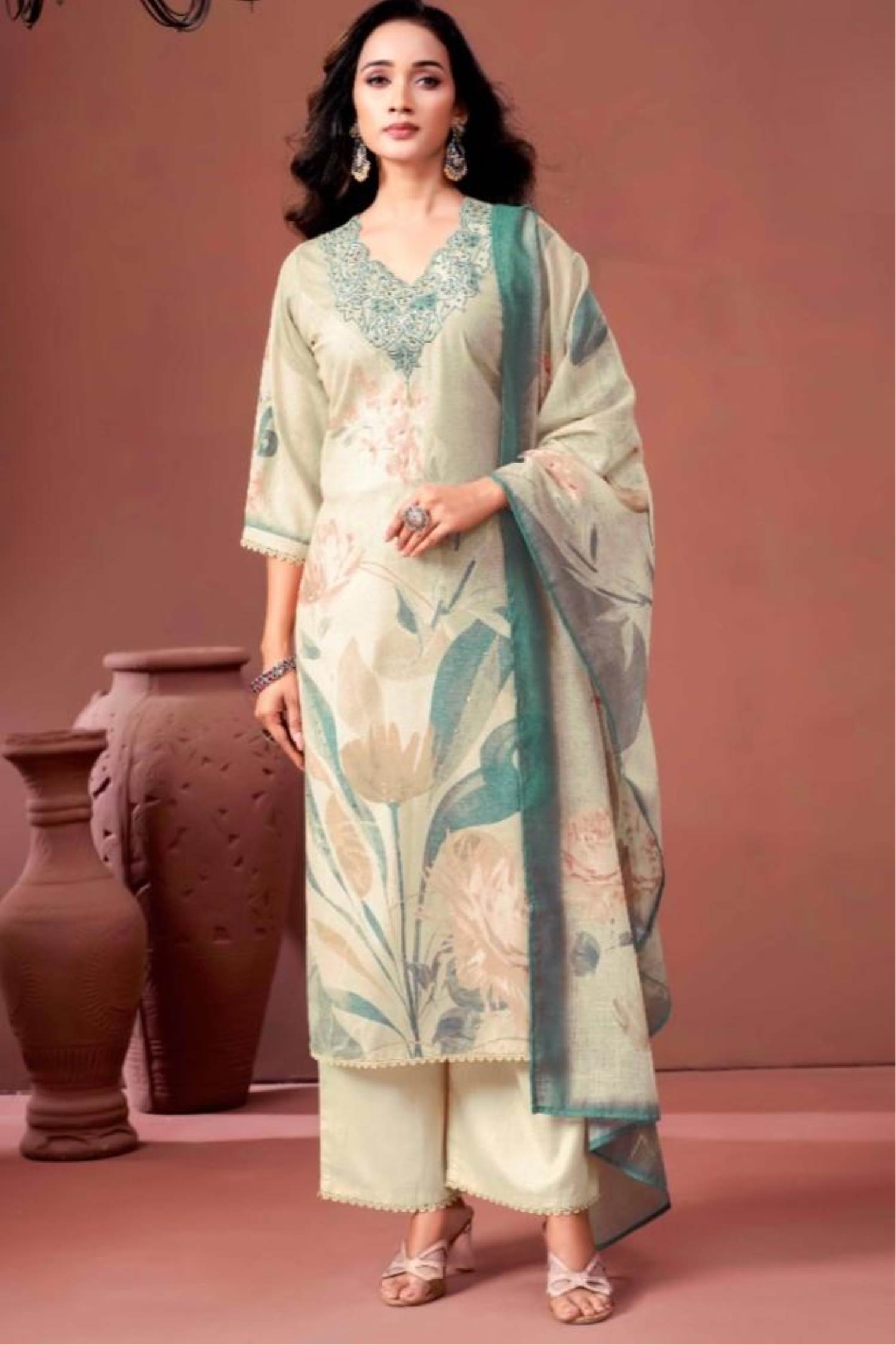 Cream Color Party Wear Designer Pent Suit :: MY SHOPPY LADIES WEAR
