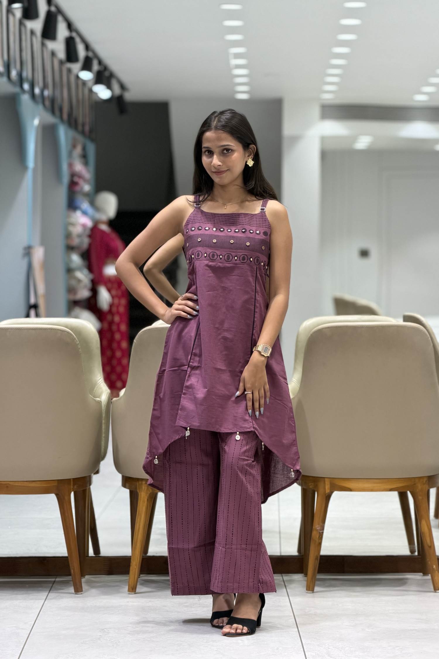 Wine color Summer wear Designer Cord-Set :: MY SHOPPY LADIES WEAR