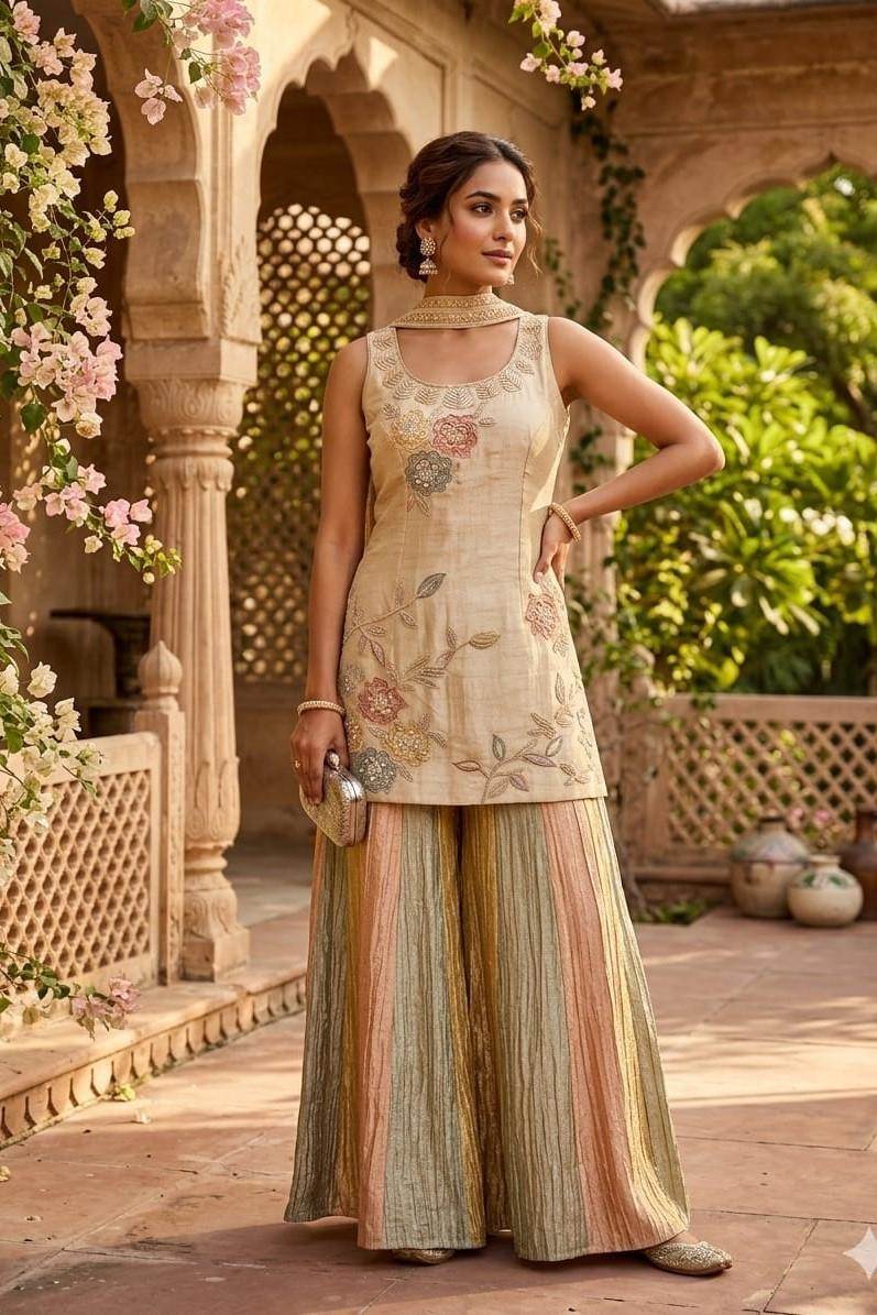 Gold Color Party Wear Designer Indo-Western Plazo Suit