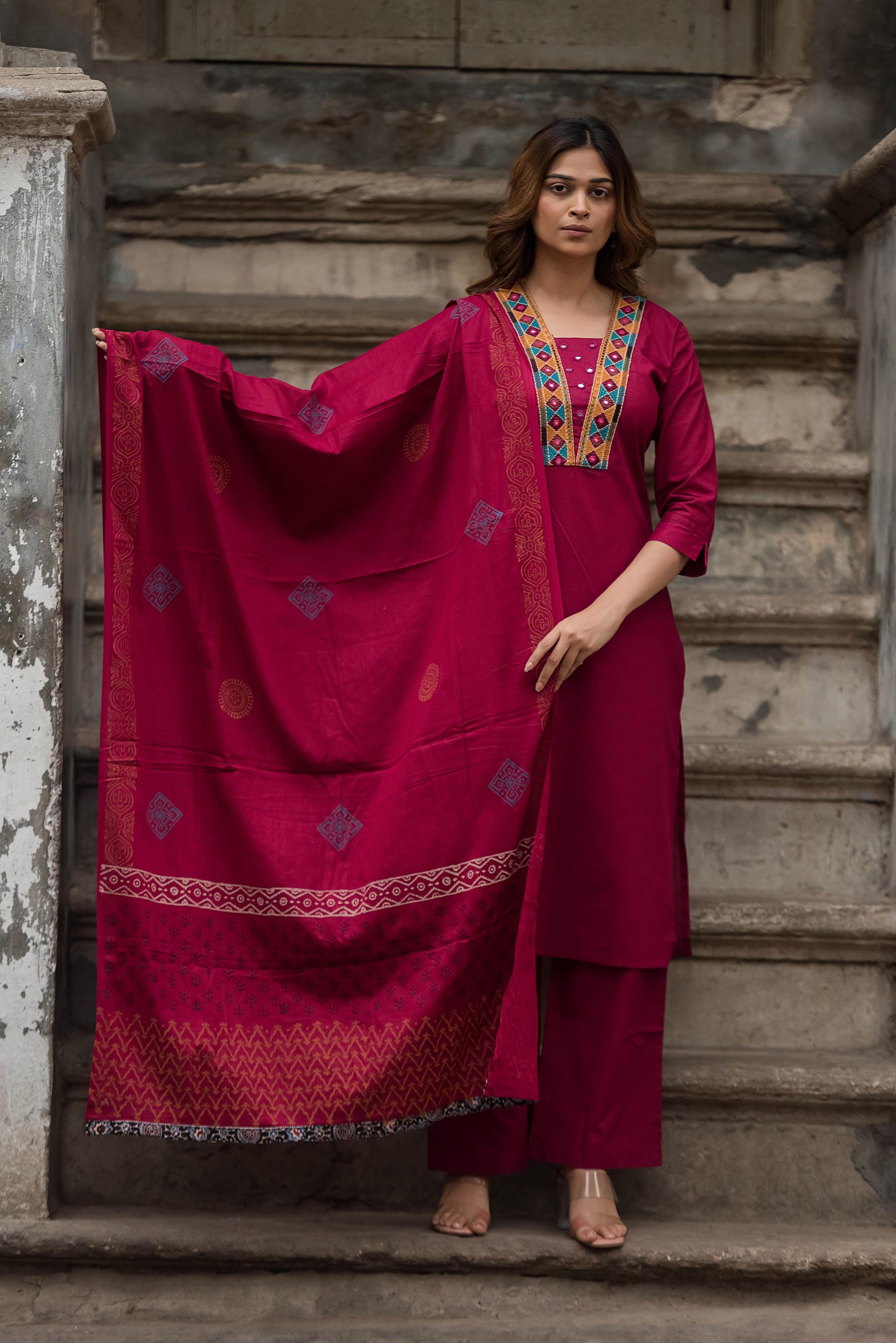 Maroon Color Party Wear Designer Kurti Set