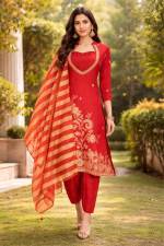 Rust Color Party Wear Designer Kurti Set