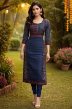 Blue Color Party Wear Designer Straight Kurti