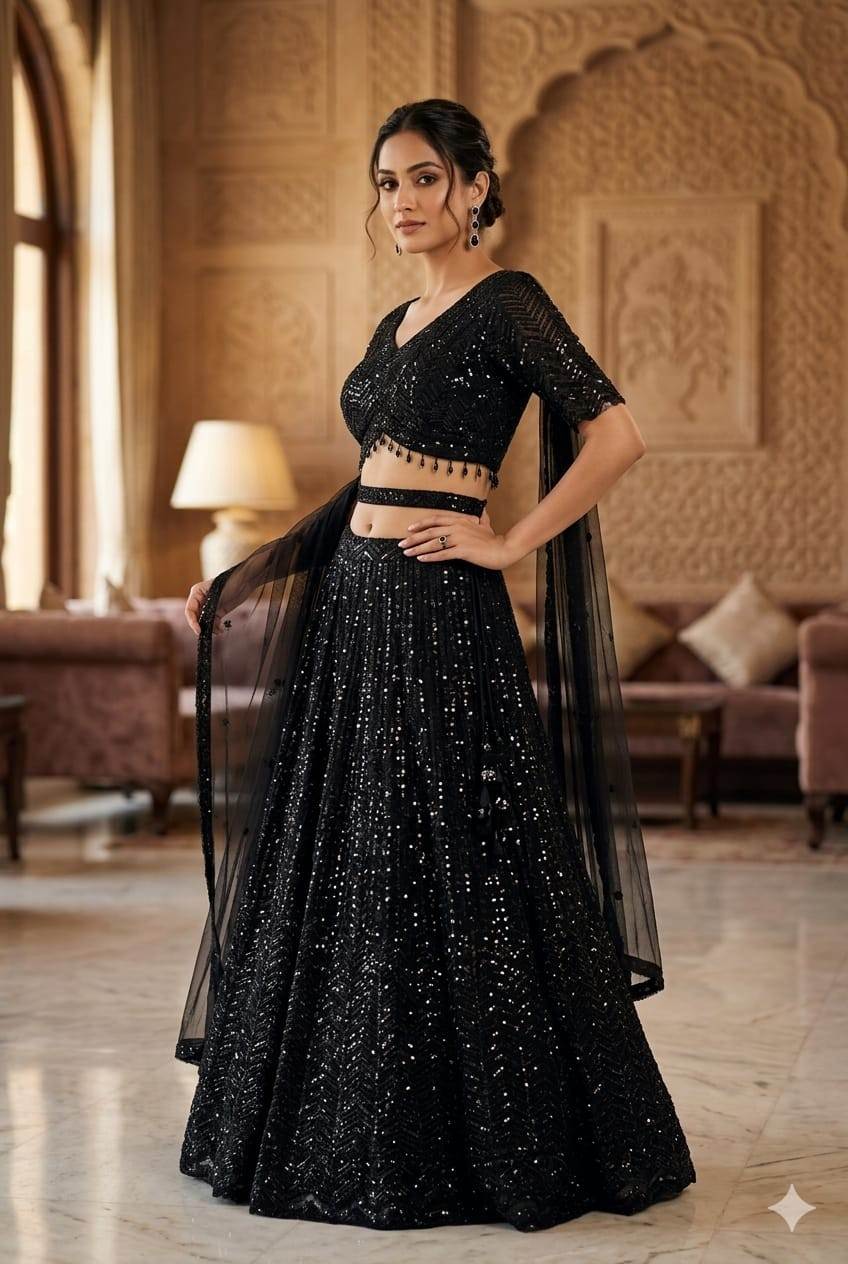 Black color Reception wear Lehenga Choli